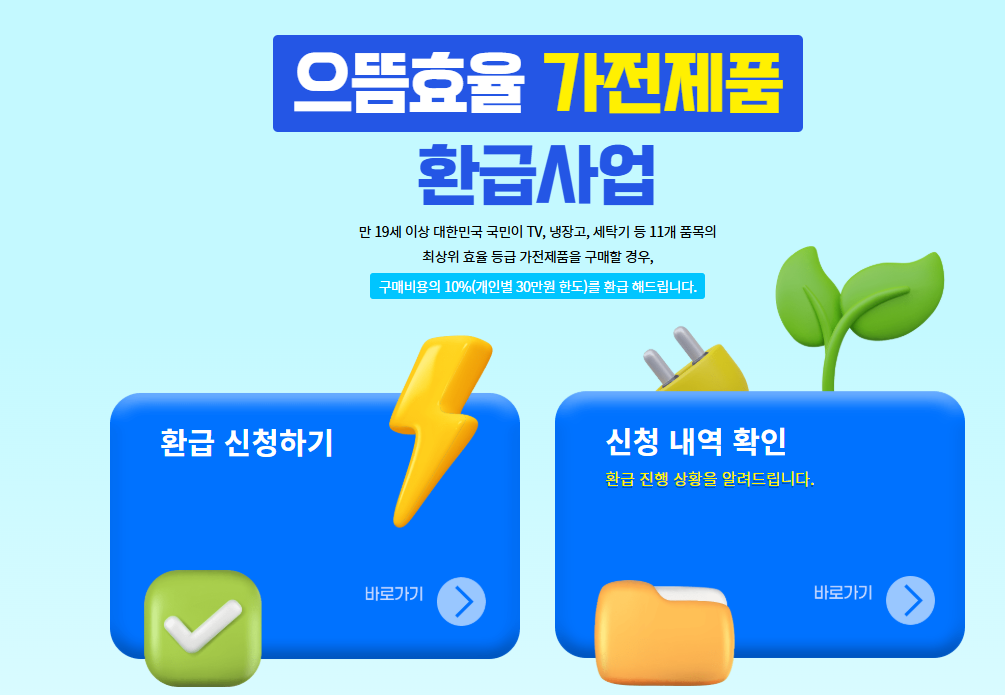 특히 냉장고, 에어컨, 세탁기처럼 전기 사용량이 큰 가전을 교체할 경우, 환급 혜택은 물론 장기적으로 전기요금 절감 효과까지 기대할 수 있습니다.
