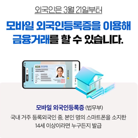 국내에 거주하는 등록외국인의 금융거래 편의를 위해 ‘모바일 외국인등록증’을 이용한 금융거래 허용 법...