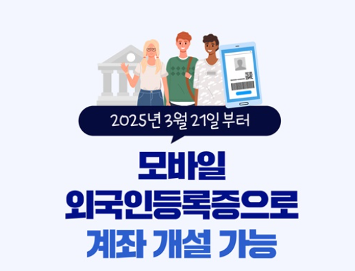 2025. 3. 21.(금) 부터 6개 은행에서 ‘모바일 외국인등록증’으로 계좌를 개설할 수 있습니다.