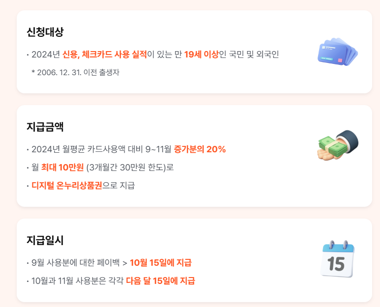 | 대상자 | 2006년 12월 31일 이전 출생자로, 지난해 본인 카드 사용 실적 있는 국민 및 외국인 |