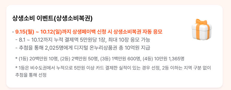 | 추가 혜택 | 상생 소비복권 응모, 추첨 통해 최대 2,000만 원 등 지급 |