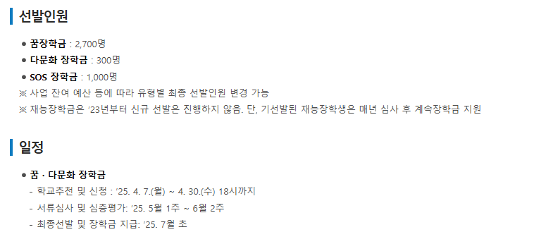최종 선발 및 장학금 지급은 2025년 7월 초예정 되어있습니다.