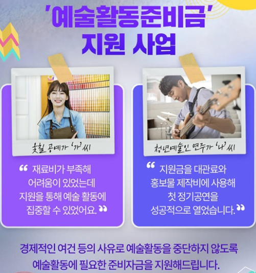 - 경제적 부담을 완화하여 창작에 집중할 수 있도록 지원