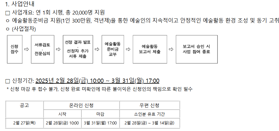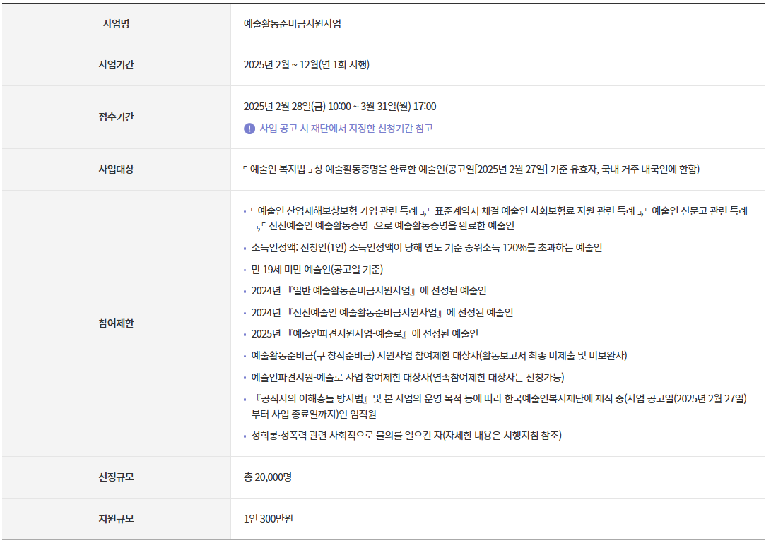 -「예술인 복지법」상 예술활동증명을 완료한 예술인(공고일(2025년 2월 27일) 기준 유효자)