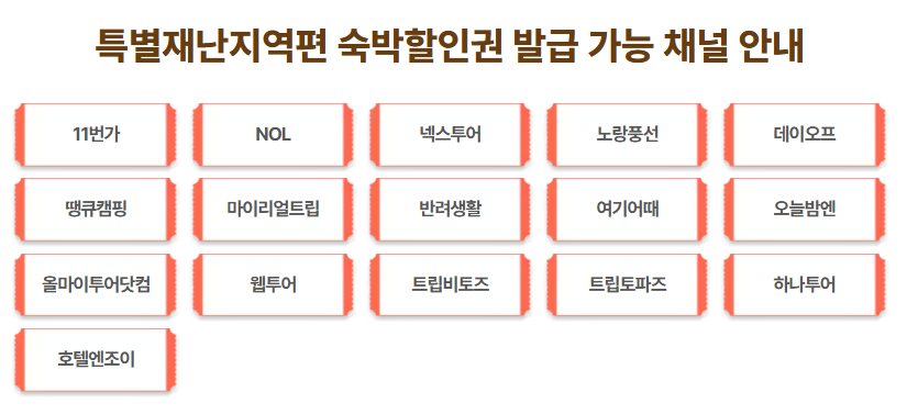 11번가, 여기어때, 쿠팡트래블, 떠나요닷컴, 하나투어, 마이리얼트립 등